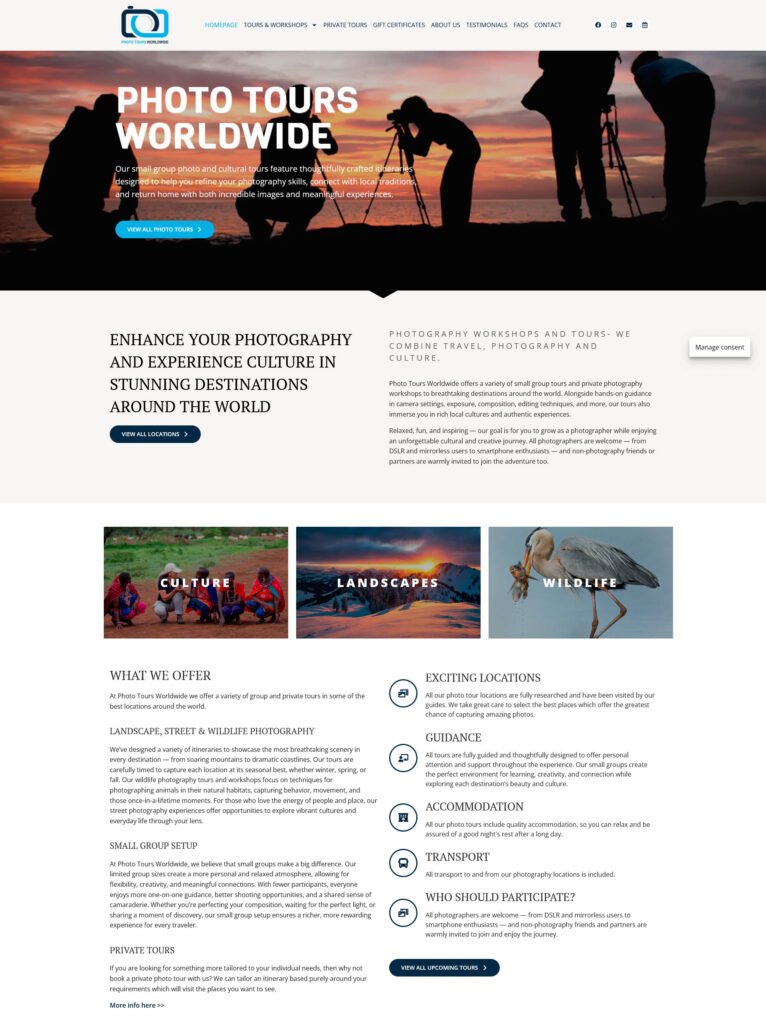 Photo Tours Worldwide offers a variety of small group tours and private photography workshops to breathtaking destinations around the world. Alongside hands-on guidance in camera settings, exposure, composition, editing techniques, and more, our tours also immerse you in rich local cultures and authentic experiences.